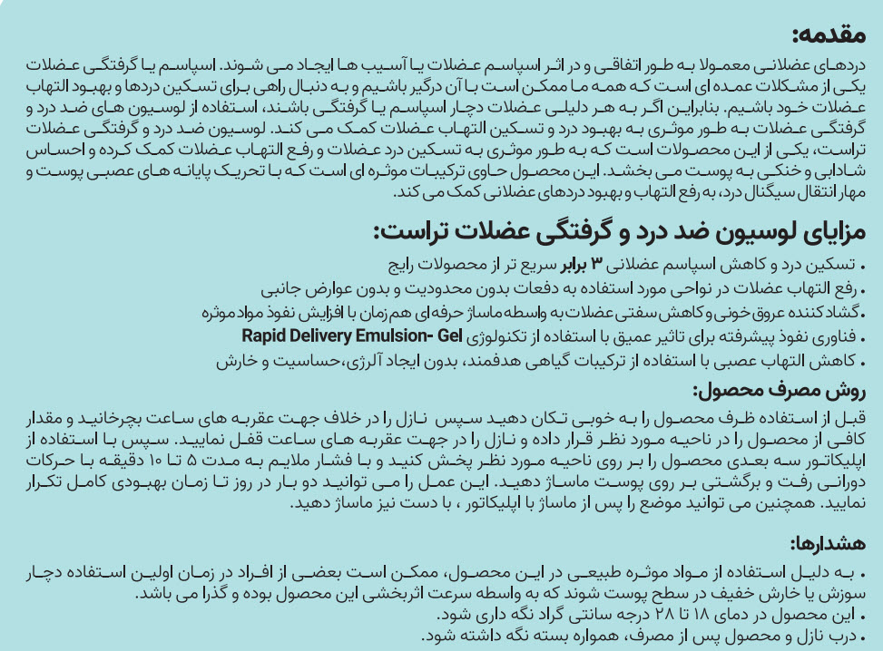 توضیح لوسیون ضد درد و گرفتگی عضلات تراست Pain Kiler